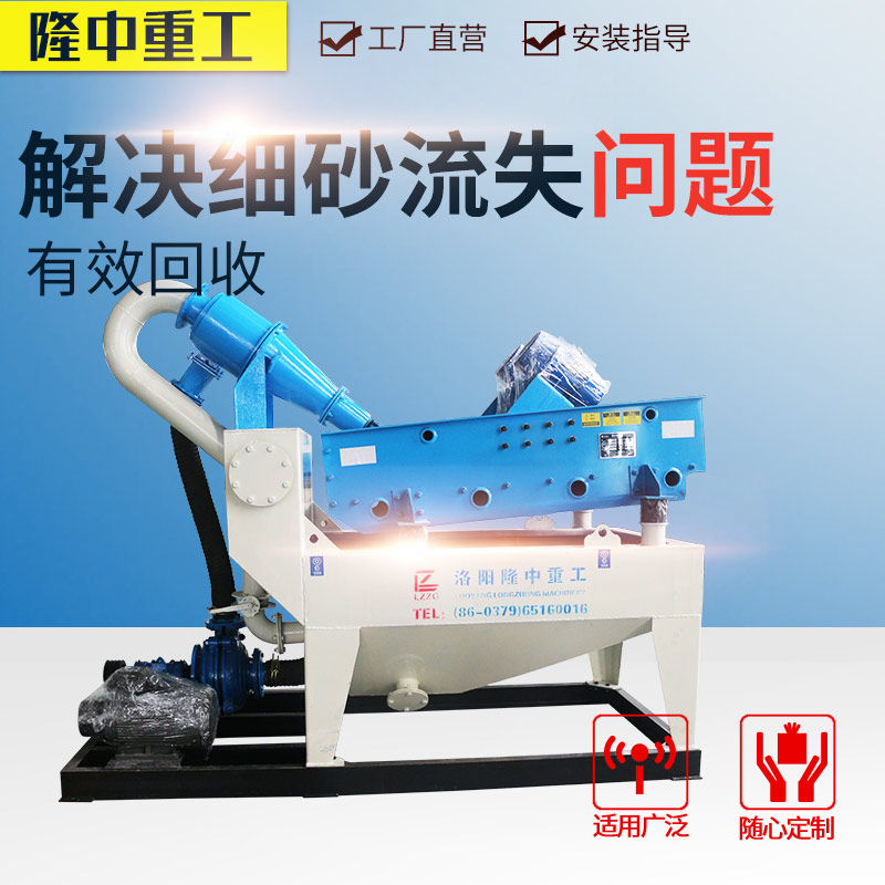 LZ系列細(xì)砂回收機(jī)工作過程:渣漿泵將砂水混合物高壓輸送至泥砂分離器,經(jīng)過高壓離心分級(jí)濃縮的細(xì)顆粒物料,經(jīng)沉砂嘴傳送給脫水篩,經(jīng)振動(dòng)篩高頻脫水后,細(xì)砂與水有效分離,精品細(xì)沙由高頻脫水篩排入皮帶。污水、泥等雜物經(jīng)緩沖返料箱排入沉淀池。