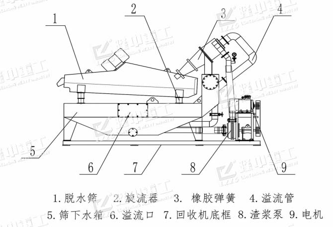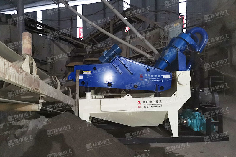 洗砂機(jī)溢流的洗沙廢水與細(xì)沙回收機(jī)的清洗槽相連,而后通過渣漿泵將清洗相中的砂水混合物輸送至泥高壓分離器中,通過高速離心力和額定的入料壓力,旋流器將礦漿中的細(xì)沙分離,濃縮后濃度提升至60-70%的細(xì)砂經(jīng)沉砂嘴提供給脫水篩,在篩機(jī)振動(dòng)的作用下,細(xì)砂與水有效分離。