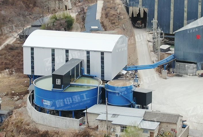濃密機(jī)是基于重力沉降的固液分離設(shè)備,將礦漿與絮凝劑混合之后,通過中心筒進(jìn)入到濃密機(jī),由進(jìn)料豎筒出口端的導(dǎo)流板,把礦漿從進(jìn)料豎筒引向四周,使礦漿向四周擴(kuò)散?蓪⒑塘繛10%-20%的礦漿通過重力沉降濃縮為含固量為45%-55%的底流礦漿,借助安裝在濃密機(jī)內(nèi)的耙機(jī)的作用,使增稠的底流礦漿由濃密機(jī)底流口排出。上層清水從頂部排水口排出,從而達(dá)到泥水分離作用。