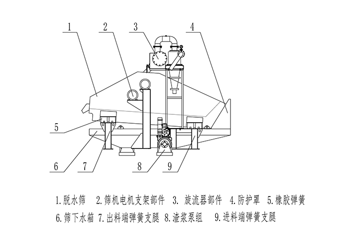 該設(shè)備一般直接安裝于洗砂機(jī)后部,設(shè)備上的脫水篩對(duì)洗砂機(jī)的成品物料進(jìn)行再一步脫水,設(shè)備上的回收系統(tǒng)則對(duì)洗砂機(jī)排出的廢料進(jìn)行再回收,充分解決了洗砂機(jī)的弊端(如:成品含水量大、含泥量大、粉塵多、雜質(zhì)難以清除等),大大提高了成品的品質(zhì)。旋流器將洗砂廢水中的細(xì)砂與水分離后,將濃度被提升至60-70%的細(xì)砂排入脫水篩表面進(jìn)行脫水,實(shí)現(xiàn)細(xì)砂的脫水回收。